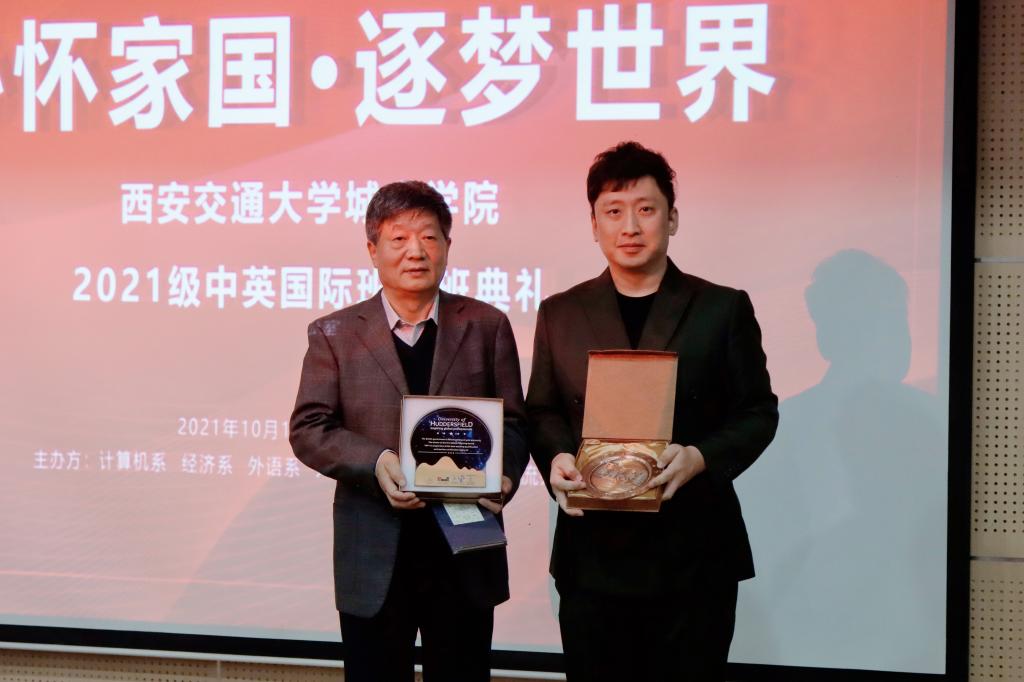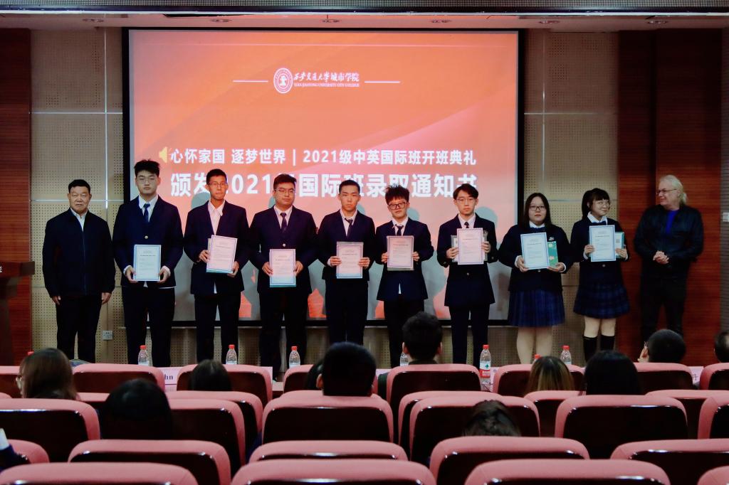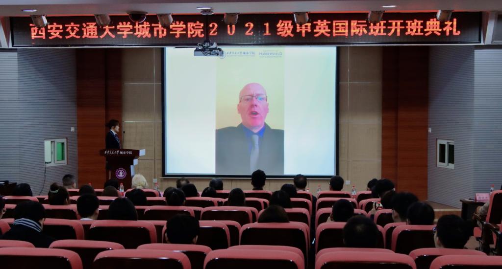 10月13日下午,西安交通大学城市学院在F100举办2021级中英国际班开班典礼。院长助理徐君陶、哈德斯菲尔德大学中国办公室负责人齐峥、计算机系主任缪相林、经济系主任张文科、人事服务中心主任姬志国、经济系副主任白丹、经济系主任助理廉宇婷、英语雅思课教师谢皖吉、外教John、相关老师及国际班学生参加了活动。大会由2020级金融国际班杜思璇主持。