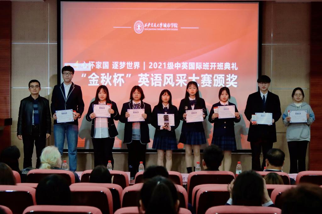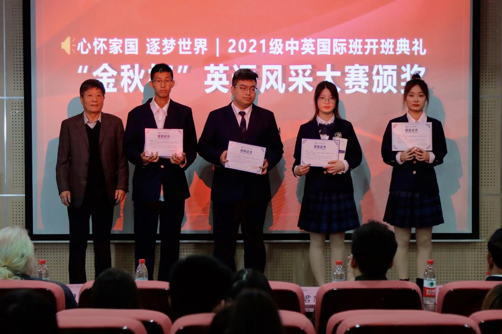 最后,学院领导为首届“金秋杯”英语风采赛的获奖学生颁发了荣誉证书及精美的奖品。