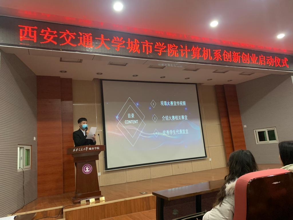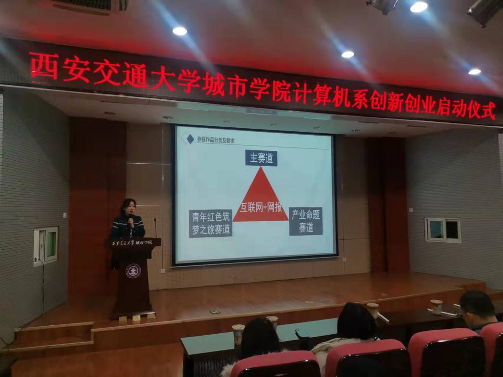 为响应学院第十届“我敢闯•我会创”创新创业大赛精神及提升我系同学们的创造精神、创新意识和创业能力,激发自主创业的热情,西安交通大学城市学院计算机系于11月21日中午召开“第十届计算机系创新创业竞赛启动仪式”,参加本次会议的有学工办全体辅导员老师,各年级学生代表,本次会议由袁英杰同学主持。