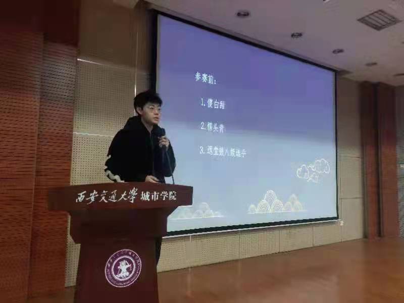 由计算机系获得第九届中国国际“互联网+”创新创业大赛陕西省铜奖的刘峻银同学进行经验分享,他向同学们讲解了自身参加大赛的前后对比,其次,他强调了在参赛过程中好的队友和导师的重要性,以及与队友,导师有效交流、沟通的重要意义,他风趣幽默的讲解与分享,使同学们进一步了解什么是创新创业竞赛,也鼓励同学们积极参赛,让自己的大学生活多姿多彩,绽放青春。