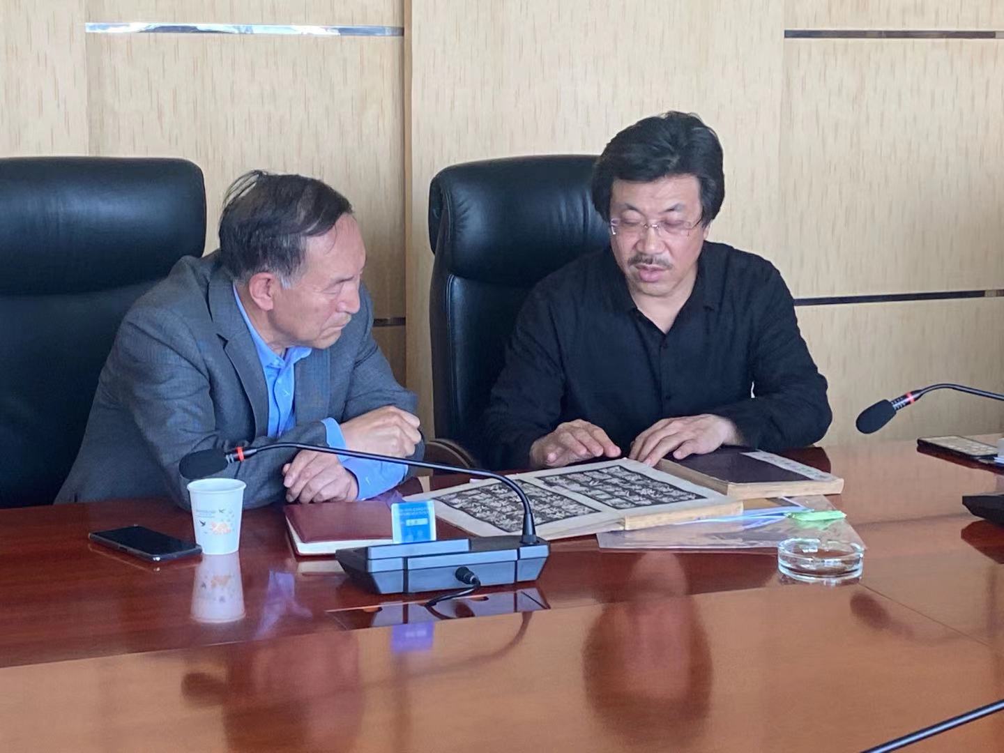 祁老师表示使用AR技术进行碑刻书法的虚拟仿真教学活动,具有很高的应用价值,不仅可以让学生在沉浸式环境中近距离观赏碑刻书法艺术,更重要的是能以数字化的形式保护珍稀文物,减少对碑刻文物的损害,还能让更多的人了解和学习碑刻书法艺术。同时,祁老师向缪老师展示了他带来的现有的北魏碑刻文字拓本。缪老师建议希望使用AR技术实现对破损碑刻文字的数字化修复,使珍贵的碑刻书法得以复原和长期保存。