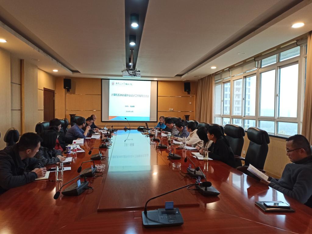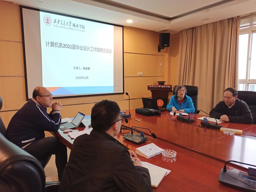 为做好2021届毕业设计工作,保证我系学生的培养质量,西安交通大学城市学院计算机系先后召开毕业设计指导交流会和毕业设计动员会,督导组陆丽娜,系主任缪相林,副系主任许大炜、系主任助理何绯娟、全系参与毕业设计指导工作的老师及2021届所有学生参加会议,两次会议由许大炜老师主持。