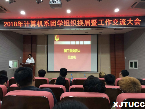 为了使新一届的学生干部继承优良传统,发扬创新精神,涉取经验和教训,全心全意为计算机系全体学生服务,计算机团工委于9月25日晚在F100召开了计算机系团学组织换届暨工作交流大会。计算机系系主任助理毕鹏老师、团工委负责人范文彬老师、上届团工委副书记刘玉箱、2018届主席团成员、计算机系团学组织全体干部、系团学组织全体干事以及计算机系17级和18级各班学生干部均到场参加。