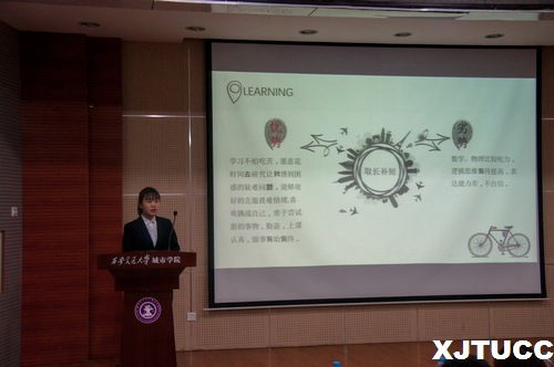 比赛正式开始,主持人宣读了比赛的具体规则和评分标准后,12名参赛选手结合PPT从自我认识、环境分析、制定大学四年目标、制定行动策略、计划评估调整等五个方面进行阐述,评委根据学生的阐述以及规划方案进行提问。整个比赛过程紧张有序,选手们的学业生涯规划设计结构完整、逻辑清晰、条理清楚、详略得当、重点突出,学习目标制定贴切合理,演讲过程富有感染力。
