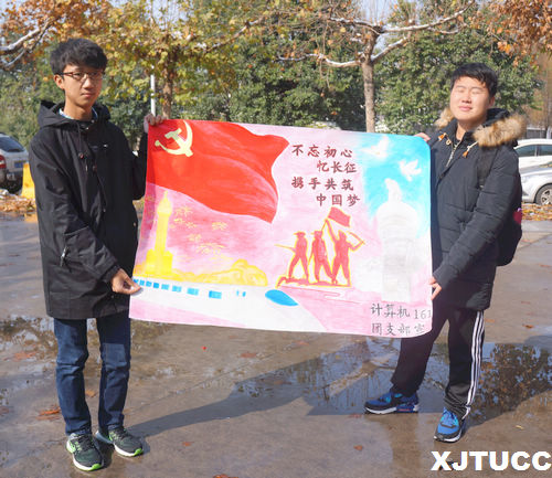 为纪念长征胜利八十周年,感恩中国共产党的领导,感谢祖国母亲的培养之恩,西安交大城市学院计算机系于11月23日中午在中快楼下举行了“弘扬长征精神,凝聚中国力量”的主题团日活动外展。计算机系团工委负责人刘一凯老师、系团学会干部、全体干事以及各个团支部同学参加了本次活动。