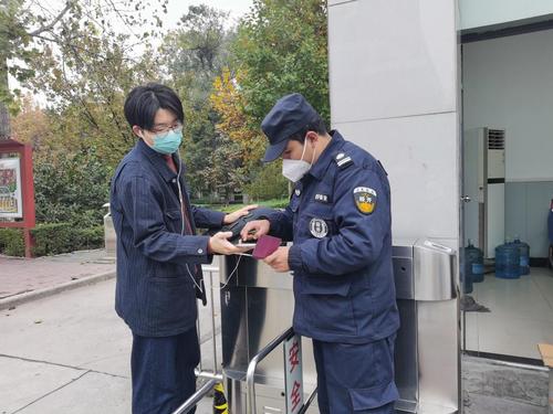 “请出示请假条”“请扫健康码、行程码”“请测温”,这是学院安保工作人员杨某近日说的最多的几句话。他笑称:“我最近口袋里必备金嗓子含片,嗓子喊哑了就含上一片缓解缓解。疫情防控期间,对在校学生实行‘非必要不外出,外出需要请假’政策,对来访人员实行提前预约备案,进校时,查验大数据行程码和健康码。我和其他安保同志们一起坚守岗位,丝毫不敢懈怠,严格进出审查核验,坚决为学院守好大门。”在晚秋的深夜里,他没有一句抱怨和不耐烦,坚守在疫情防控工作中。