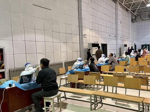 此次核酸检测离不开学生志愿者们的辛苦付出。19日上午11时接到核酸检测工作安排,学院团委12时便集结50名志愿者在大学生活动中心进行前期布场。1时10分,40余名志愿者上岗,从下午14时至晚间23时,在活动中心楼梯间、检测场地均能看到志愿者们忙碌而暖心的身影。
