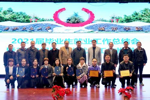 首先朱旭副院长宣读《西安交通大学城市学院关于表彰2021届毕业生就业工作先进集体及先进个人的决定》,对在2021届毕业生就业工作中表现突出的集体和个人进行了表彰。院领导向获奖集体和先进个人颁发奖牌、证书及奖品。