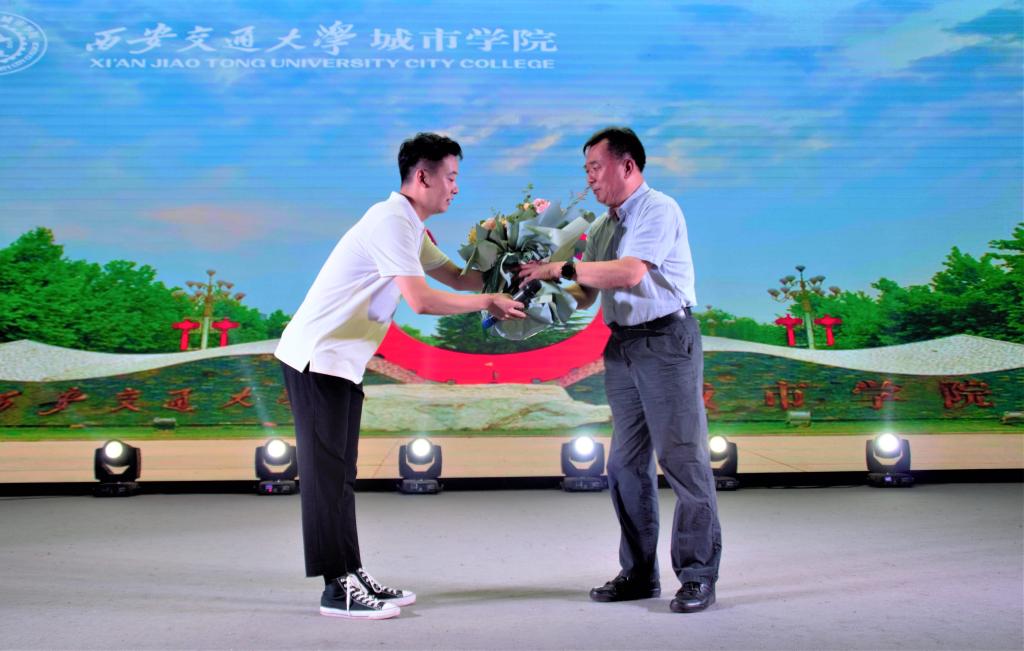 匆匆数年,又至今夏。为欢送2021届毕业生,表达对毕业生的美好祝福和殷勤期望,刻下属于2021届毕业生的青春烙印。西安交大城市学院于6月28日晚在大学生活动中心举办2021届毕业晚会。西安交通大学城市学院院长陈光德、党委书记张爱萍、副院长张敬朝、副院长朱旭、副院长岳华海、院长助理徐君陶、纪委书记朱普社、工会主席冀祥以及各系(教学部)、中心(部)负责人、2021届毕业生代表、教师代表以及全体学工人员共同参加晚会。本次晚会由毕业生贾一哲、张子辰、周瑱及2019级学生路凡主持。