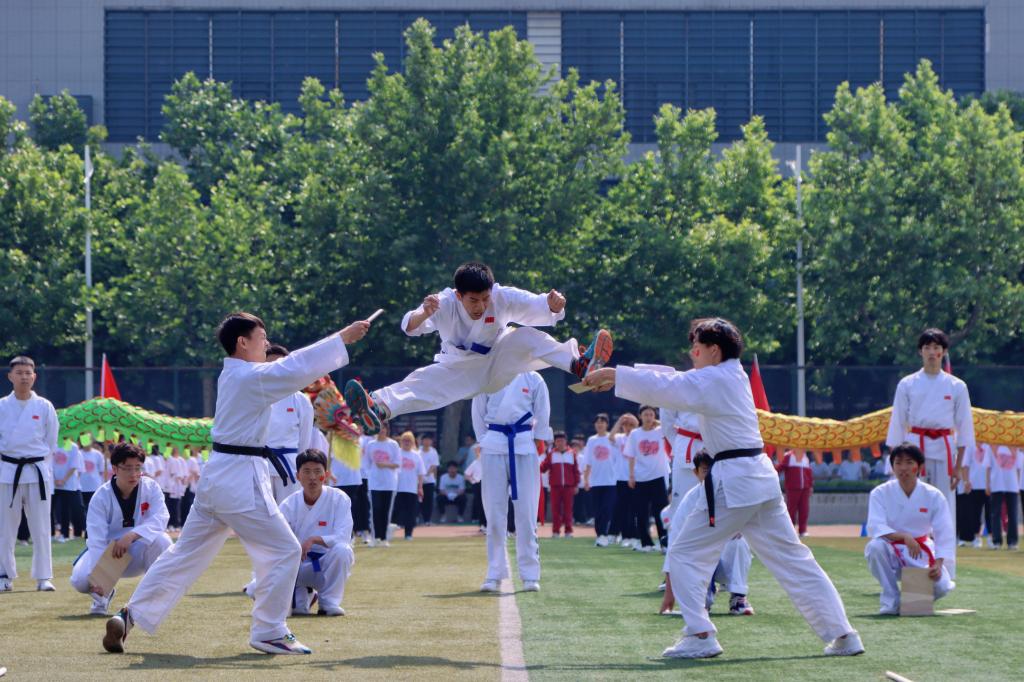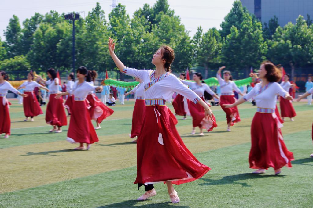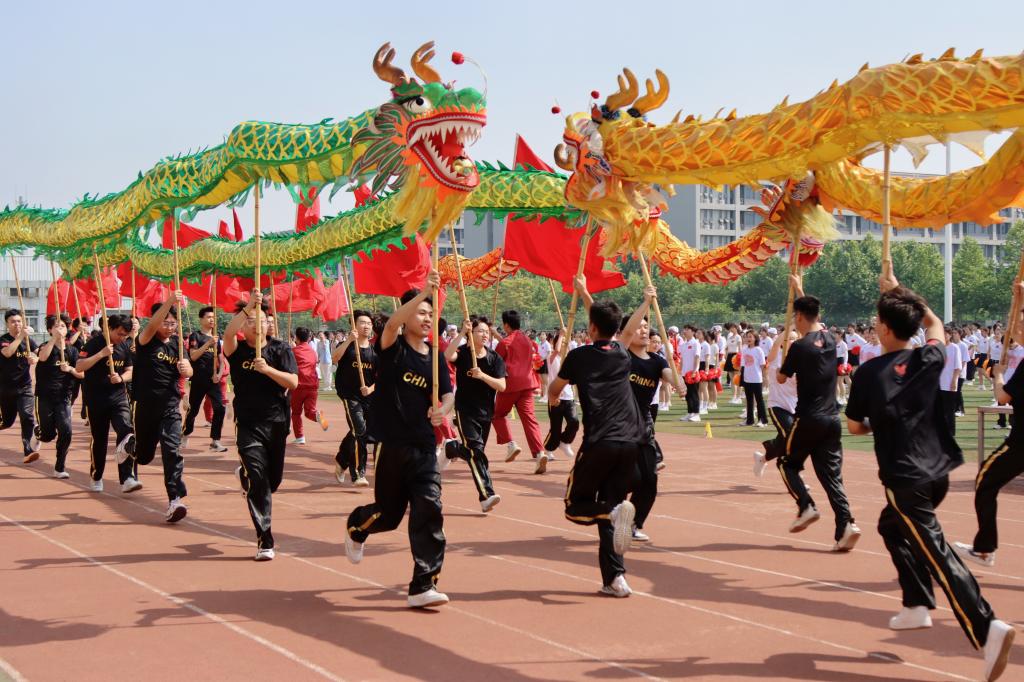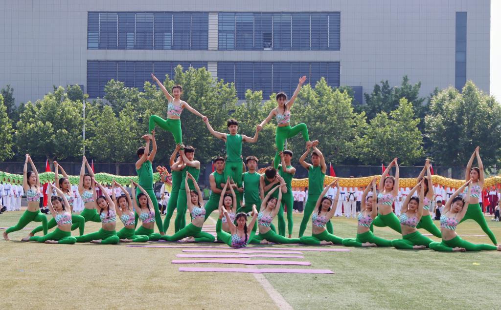 整场开幕式表演包括了龙腾狮啸、舞动花球、吉祥腰鼓、动感街舞、舞蹈《再唱山歌给党听》、逐梦柔力球、尚武之魂、神韵瑜伽、空手道、青春健身操舞、集体健身操、广播体操比赛等。参加演出的师生利用课余休息时间精心准备,刻苦排练,大家精神饱满,口号洪亮,动作整齐划一、张弛有度,在运动场上挥洒汗水、奉献热情。会场气氛热烈,掌声阵阵。