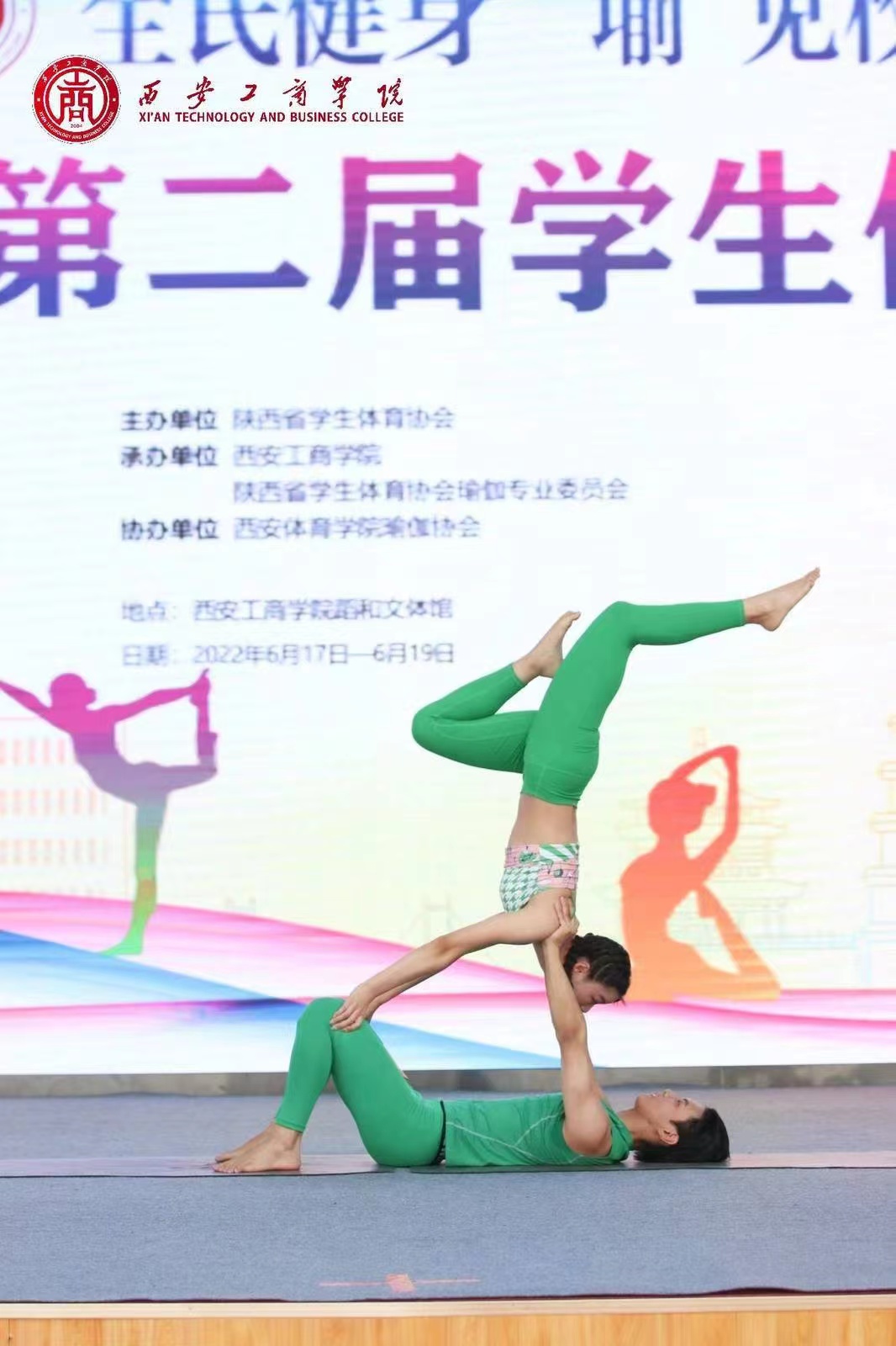 5月17日至19日,2022年陕西省第二届学生健身瑜伽比赛在西安工商学院蹈和文体馆举办。本次赛事由陕西省学生体育协会主办,西安工商学院和陕西省学生体育协会瑜伽运动专业委员会协办。共设男子单人、女子单人、女双、混双、集体规定、大集体自编、小集体自编和集体器械8个项目。