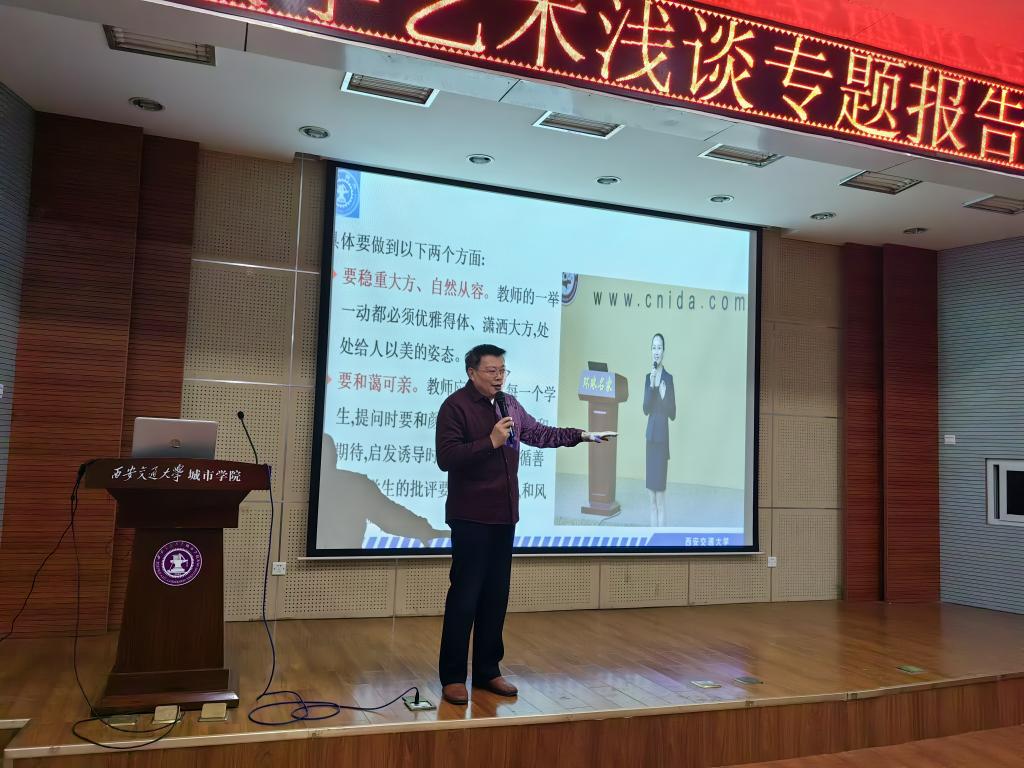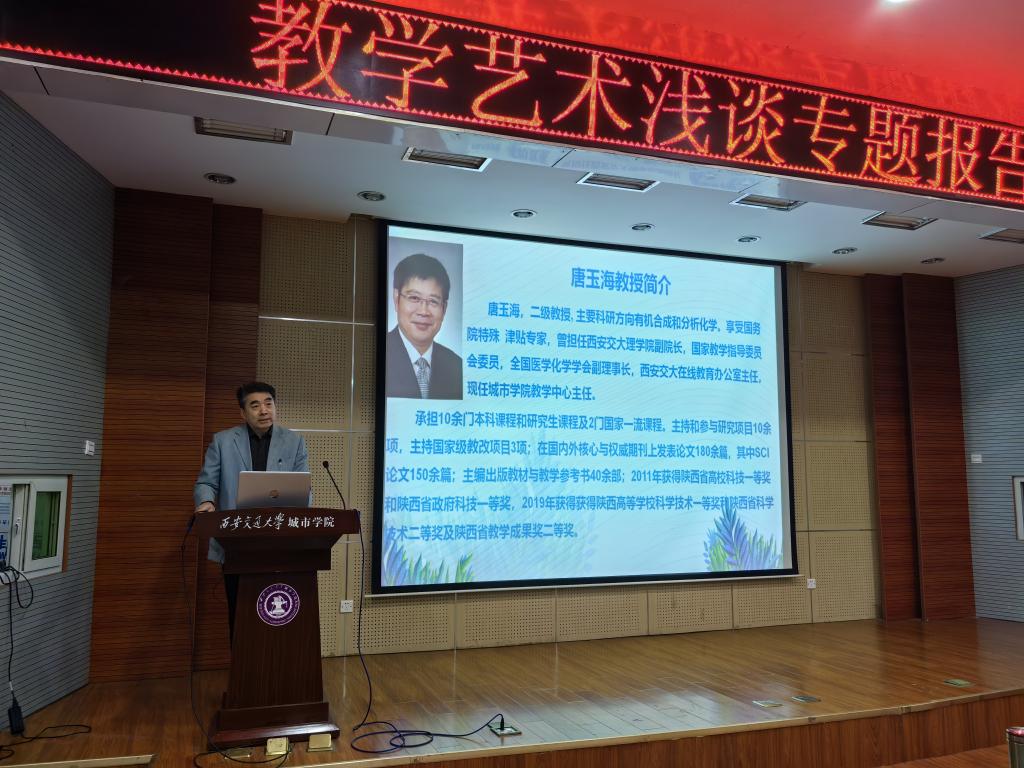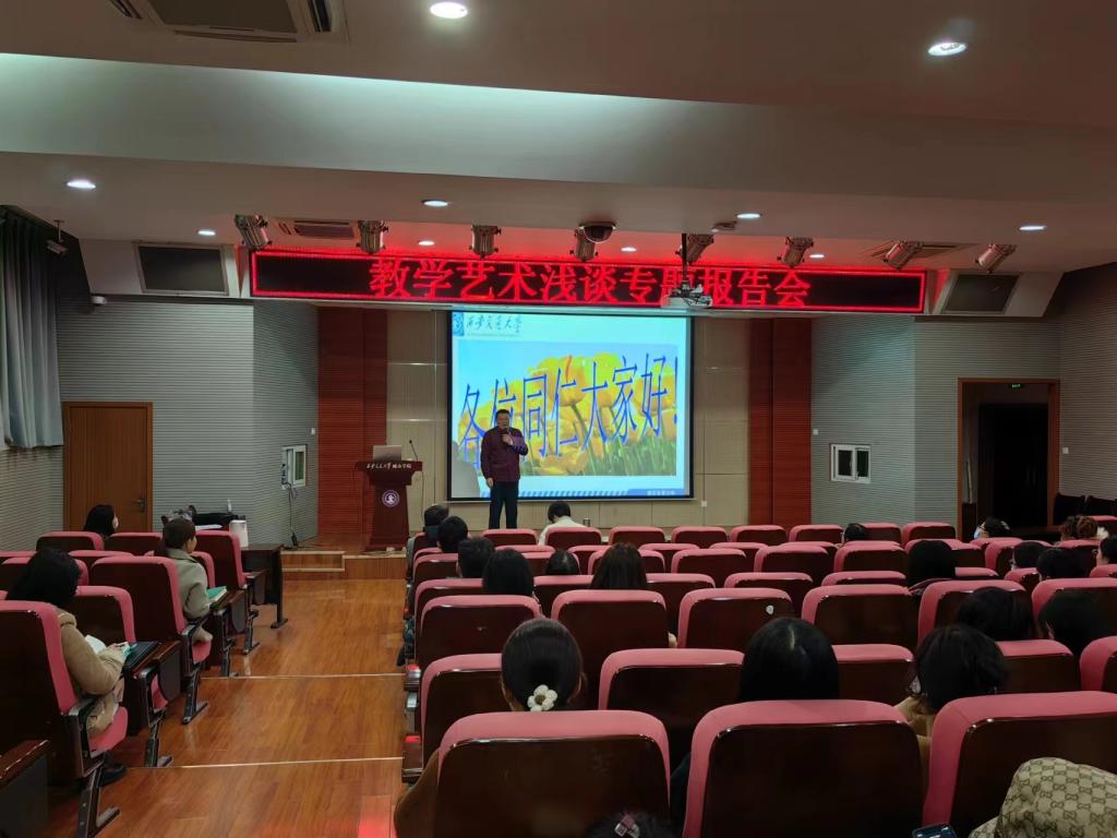 为进一步提升全院教师课堂教学水平,深化全院教师对课堂教学艺术的理解与认识,学院于11月24日下午在教学楼F100举办了教学艺术浅谈专题报告会。西安交通大学城市学院教学服务中心主任唐玉海教授作专题报告,教发中心主任史冬梅副教授及各系部40岁以下青年教师近百人参会,会议由朱旭副院长主持。