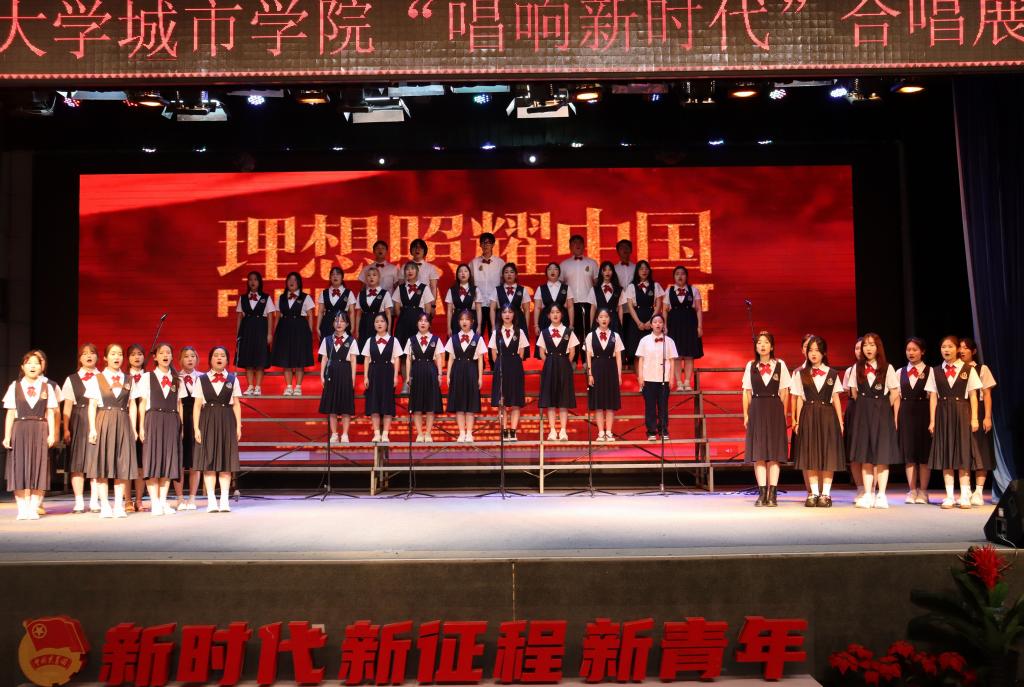 比赛现场,八支由各系师生组成的百人合唱队,纷纷以饱满的精神状态、高昂的士气,迎接这场比赛,他们唱出了学史力行、争先创优的精神风貌,唱响了红心向党、永远跟党走的坚定信仰,充分展现了城院学子的朝气蓬勃、积极向上的昂扬斗志。《我和我的祖国》《走向复兴》《在灿烂阳光下》《篇章》一首首经典脍炙人口的红歌,一曲曲高亢动人的歌声,抒发了红心向党的真挚情感,充分展示了师生“厚德 博学”的精神力量,与时代同发展、共奋进的坚定信念。