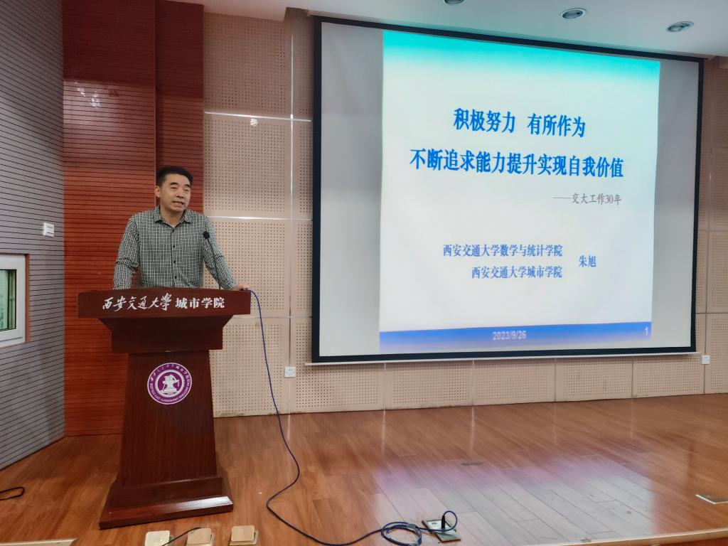 加强师德师风建设,提高教师职业道德素养。朱旭副校长以“立德树人守初心,铸魂育人担使命”为主题作了专题报告,他指出,教师必须牢固树立正确的世界观、人生观和价值观,严格遵守职业道德规范,以良好的思想政治素质和崇高的人生追求影响和引领学生健康成长。同时站好三尺讲台,潜心育人,提高人才培养质量。