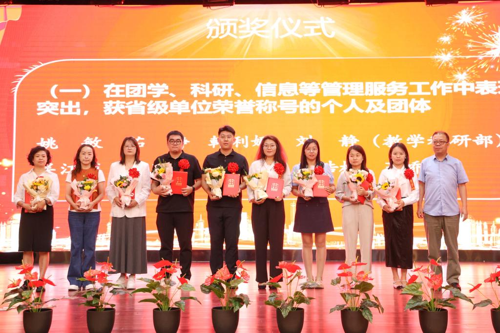 大会在庄严的国歌声中拉开帷幕。党委书记张爱萍宣读表彰决定,对一年来在教学、科研、学生竞赛、管理与服务等方面取得成绩的先进个人和集体进行表彰。与会领导分别为获奖个人和集体颁发荣誉证书并赠送鲜花。