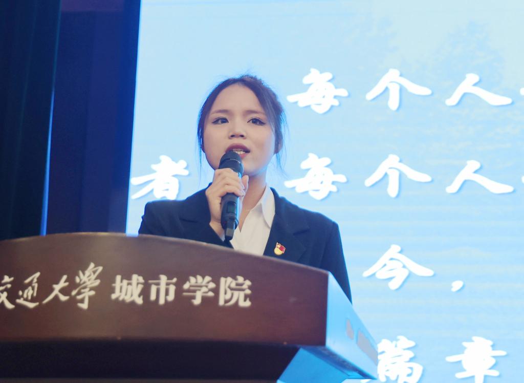 10月12日,西安交通大学城市学院2023-2024学年优秀学生标兵答辩评审会在教二报告厅举行。校长严红昌、党委书记张爱萍莅临评审会,副校长朱旭、纪委书记袁晓蕾、行政人事部部长姬志国、学生工作处处长辛红伟、教学科研部副部长康彦青担任评委。各二级学院学工负责人及部分辅导员参会,300余名学生进行了现场观摩学习,评审会由播主2402班周林欣主持。