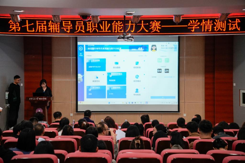 为深入贯彻落实全国教育大会、全国高校思想政治工作会精神,进一步提升辅导员队伍的责任意识和了解学情的能力,10月12日,西安交通大学城市学院举办第七届辅导员职业能力大赛之学情测试。党委书记张爱萍、副校长朱旭、党委工作部部长霍伟森、学生工作处处长辛红伟、副处长姚敏及各二级学院学生工作负责人莅临观摩指导,全体辅导员到场参赛。