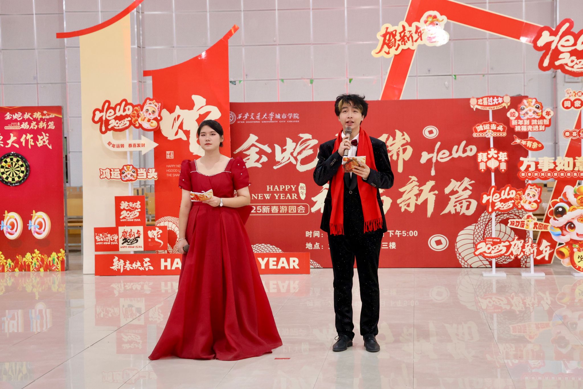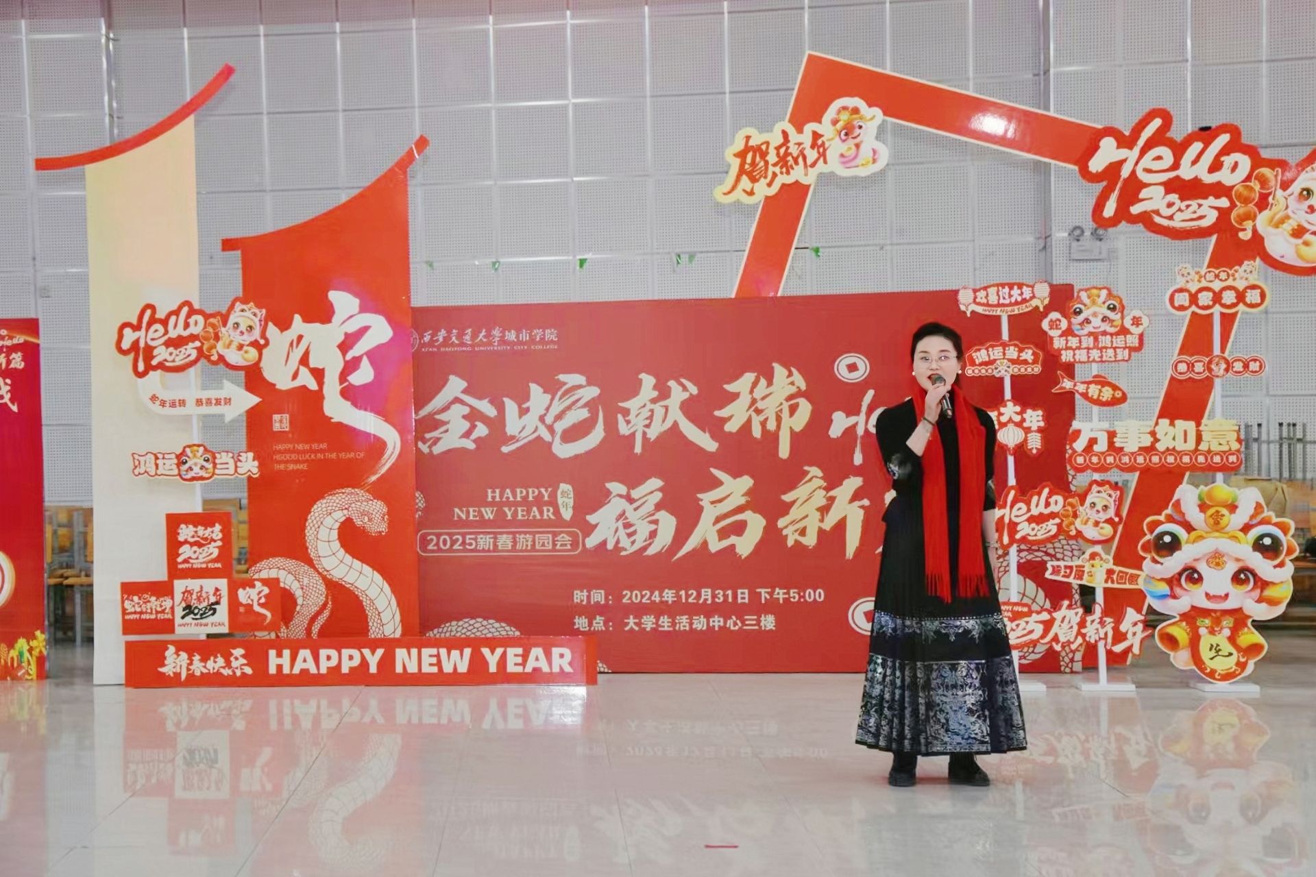 为迎接新年到来,营造浓厚的节日气氛,使全校师生体验中华传统文化和非遗文化的魅力。西安交通大学城市学院于2024年12月31日在大学生活动中心三楼举办了“金蛇献瑞,福启新篇”2025新春游园会。校长严红昌、党委书记张爱萍、副校长陈书荣、副校长朱旭、副校长岳华海、工会主席许恩奇、纪委书记袁晓蕾及各二级学院领导、师生代表参加了本次游园会。游园会由经济2402王蒙恩及护理2403史琪妙两位同学主持。