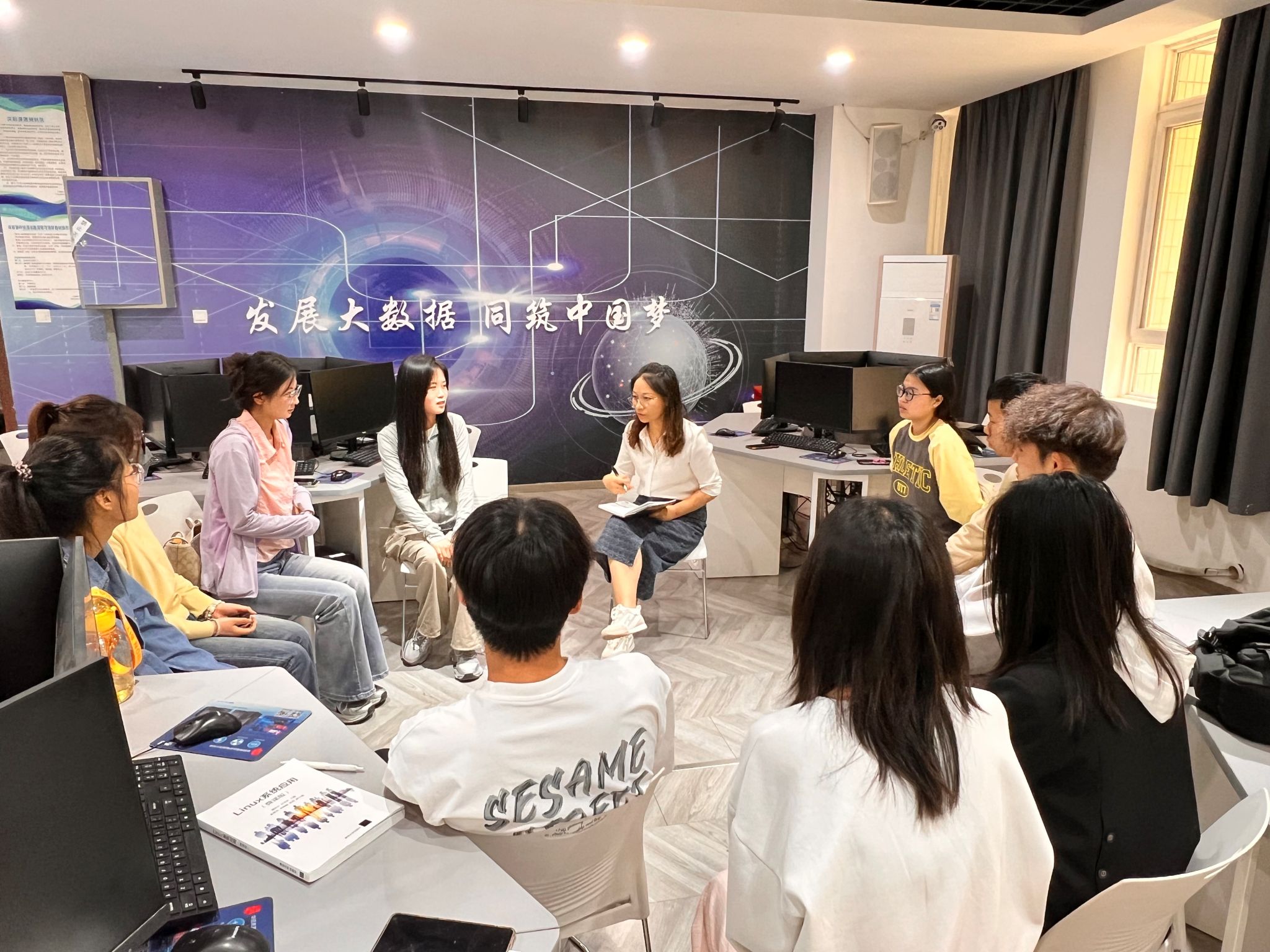 座谈会上,王博、何绯娟和范丽亚鼓励同学们积极发言并对各门课程情况进行了详细了解,询问了教师的授课情况以及同学们的学习状态,解答了同学们提出的问题。各班学生代表对本学期数据结构、人工智能导论、高等数学、大学物理、英语等专业课程与公共基础课程学习情况进行了反馈,对授课课程、授课教师和学生学习状态提出了建议。三位老师针对学生的建议与意见进行了详细记录,并针对相关问题进行了解答。老师们建议班委切实负起责任成为老师与同学间沟通的桥梁,主动跟任课老师沟通教学内容及进度;要重点帮助同学们端正学习态度,做好课前预习、课后复习;就个别问题,学院会与其他部门积极协调,确保问题得到有效解决。