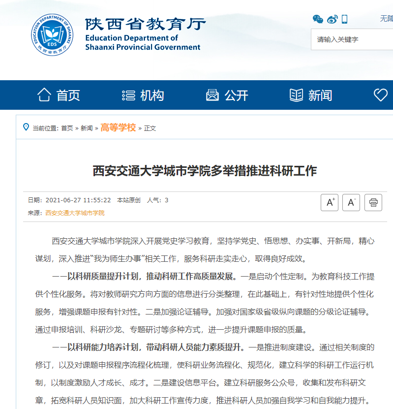 链接:西安交通大学城市学院多举措推进科研工作_高等学校_新闻_陕西省教育厅 (shaanxi.gov.cn)