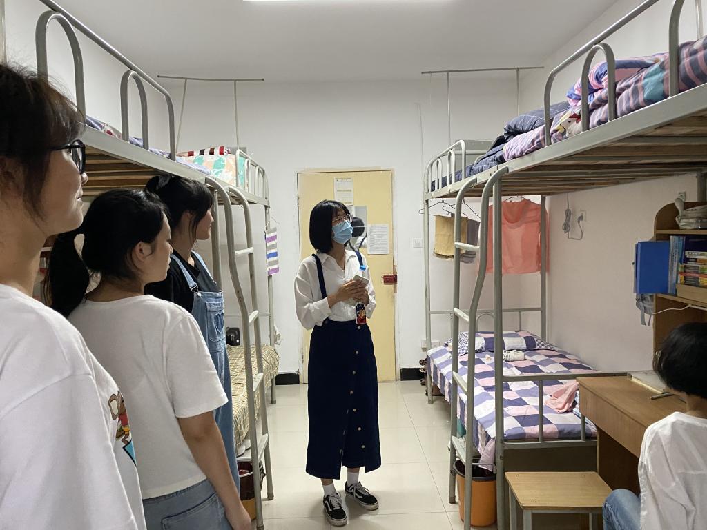 走访过程中,老师们亲切地与新生进行交谈,细心询问入学后的住宿、就餐和生活用品等问题,提醒学生注意寝室安全问题。缪主任提醒新生们要深刻认识到大学学习的重要性,培养良好的学习习惯,选择高效科学的学习方法,做好学业规划,合理安排时间。为抓好常态化疫情防控,缪老师建议学生做好个人防护,要经常开窗通风、加强锻炼,要及时添衣保暖、注意健康,遇到困难及时和老师沟通解决,并提醒同学们要整理好物品,共同营造良好的宿舍氛围。同时要珍惜四年大学时光,学会相互理解、彼此尊重,互相比学赶帮超,尽快熟悉和融入大学生活。