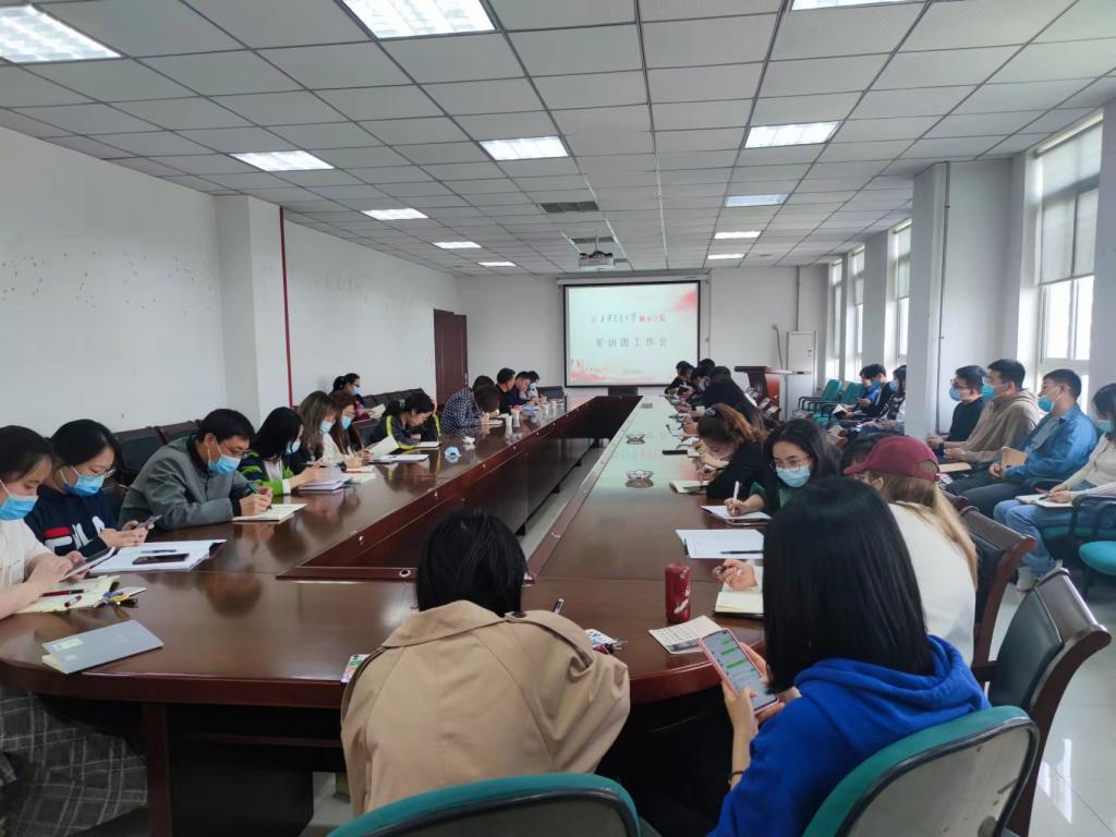 4月13日,西安交通大学城市学院军训团在行政楼504会议室召开工作会,军训团团长张学堂,副团长辛红伟、马瑞及各科长、营长、教导员、指导员参加了会议。