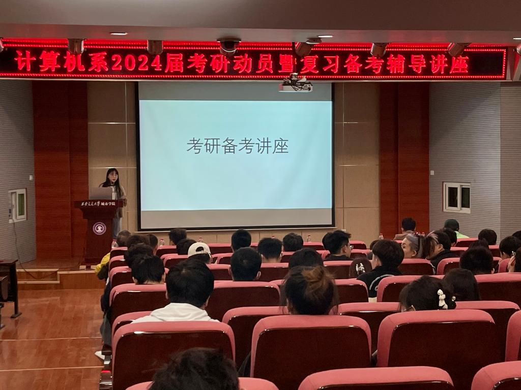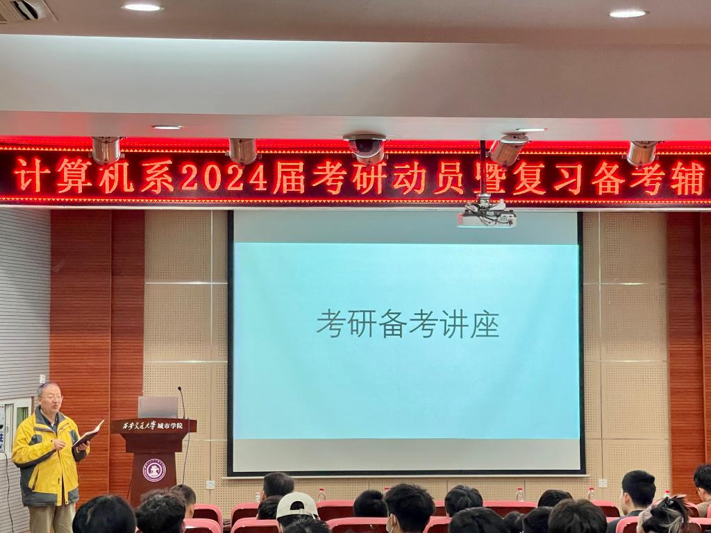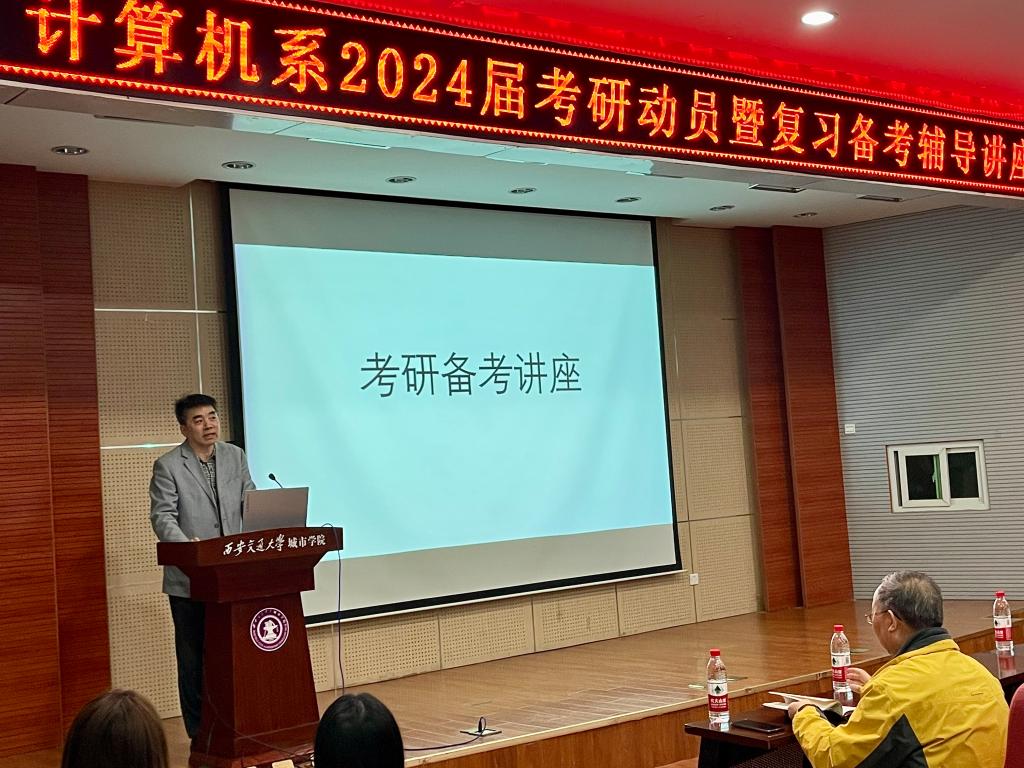 为帮助2024届学生进一步理清考研形势,明确考研目标,提升考研自信心,计算机系于3月14日晚在F100举行考研动员暨复习备考辅导讲座。本次讲座特邀西安交通大学城市学院副院长朱旭教授作主题辅导,计算机系主任姚全珠教授、主任助理王博、刘敏涛以及2024届考研学生参加了本次讲座,讲座由李丹丹老师主持。