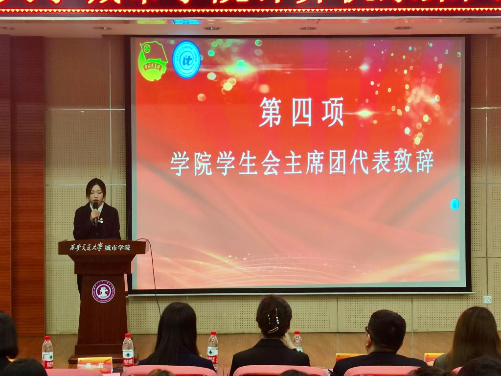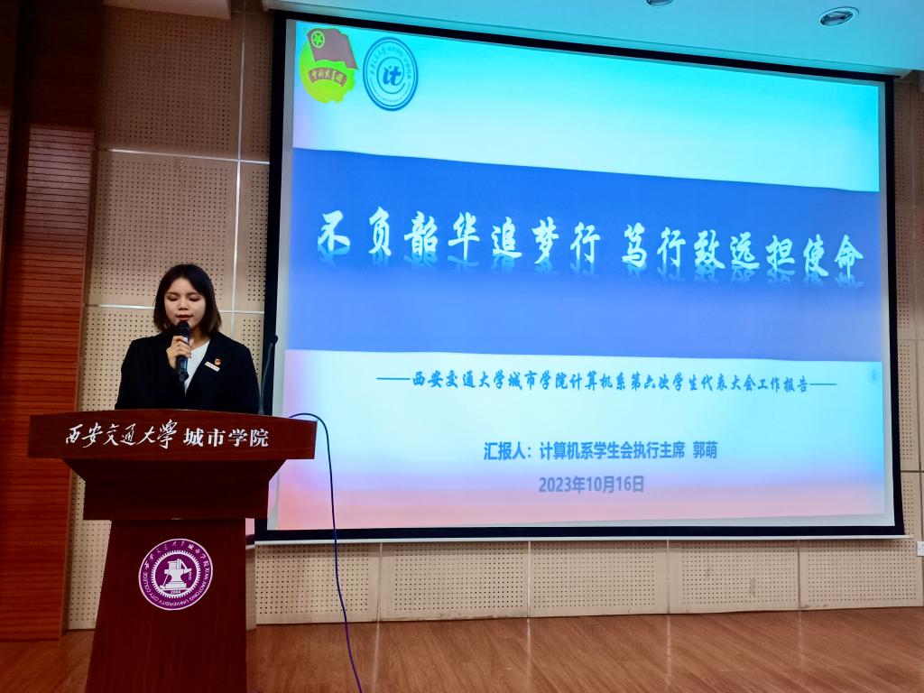 10月16日晚,西安交通大学城市学院计算机系第六次学生代表大会在学院F100报告厅召开。学院团委金牧羊、徐兰君,护理系团学工作负责人路凡,计算机系学生党支部书记崔佳楠、计算机系团工委书记康乃馨、计算机系2023级辅导员刘浩楠及学院学生会主席团成员、护理系学生会主席团成员代表出席本次大会。同时,计算机系50名学生代表参加大会。大会由熊晨同学主持。