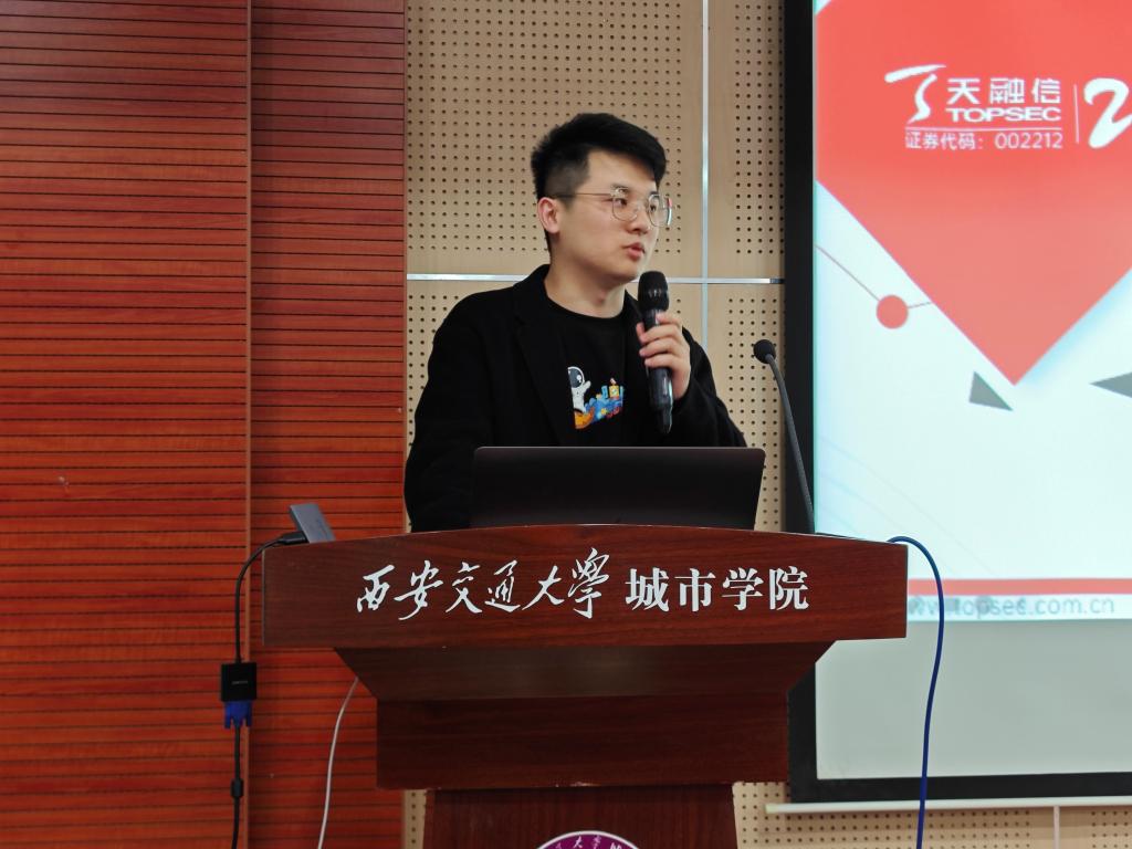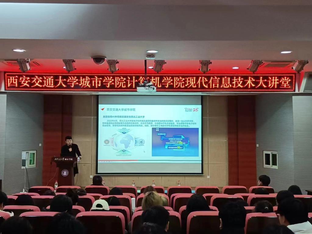 为增强大学生网络安全意识、更好地了解网络安全专业,西安交通大学城市学院国产妇精品伦一这二区三邀请北京天融信教育科技有限公司于11月30日在F100举办题为“现代信息技术大讲堂-信息安全与技术分享”讲座。北京天融信教育科技有限公司西安分公司李瑞港经理,国产妇精品伦一这二区三实验室主任胡朋,辅导员康乃馨、刘浩楠参与此次讲座。此次讲座由国产妇精品伦一这二区三学工负责人崔佳楠主持。