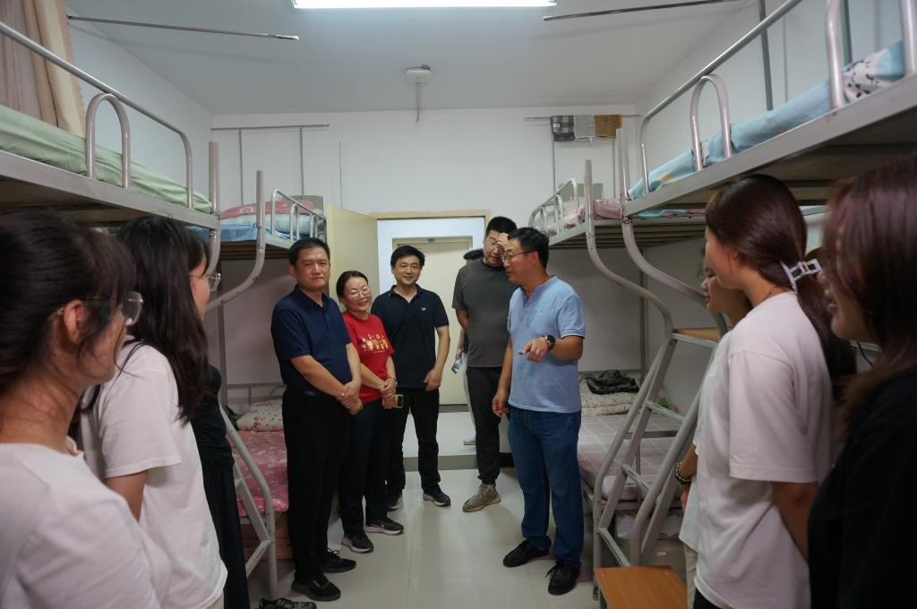 8月25日下午,物理与新能源学院院长牛海波、副院长兼新能源系主任竹有章、新能源系副主任赵蓓、班主任赵云芳、辅导员樊超、办公室秘书袁芳一同走访新生宿舍,为学生们送去温馨的关怀并与同学们进行了深入交流。