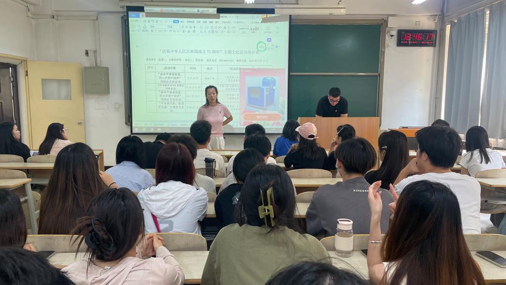 为庆祝中华人民共和国成立75周年,管理学院学生第一党支部于9月25日晚在教2-107举行“盛世中华,同心同行”主题党日活动。党支部书记刘健、支部组织委员康轲岚、辅导员张天源以及全体党员参加,活动由刘健主持。