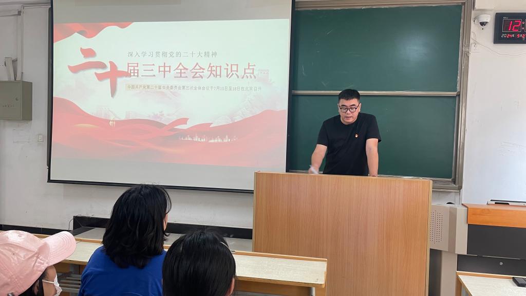 在康轲岚老师的带领下,支部党员重温入党誓词,进一步坚定了理想信念,提醒大家要时刻铭记自己的党员身份,始终保持对党的忠诚和对人民的热爱。刘健带领支部成员学习了党的二十届三中全会精神。通过对《中共二十届三中全会公报》以及会议审议通过的《中共中央关于进一步全面深化改革、推进中国式现代化的决定》的详细解读,与会党员深刻领会和把握进一步全面深化改革的主题、重大原则、重大举措、根本保证,纷纷表示要将学习成果转化为实际行动,努力学好自己的专业知识,成为有用之才。康轲岚号召大家积极参与到庆祝中华人民共和国成立75周年活动中来,通过多种形式表达对祖国的热爱和祝福,并明确系列活动的具体内容和时间安排。