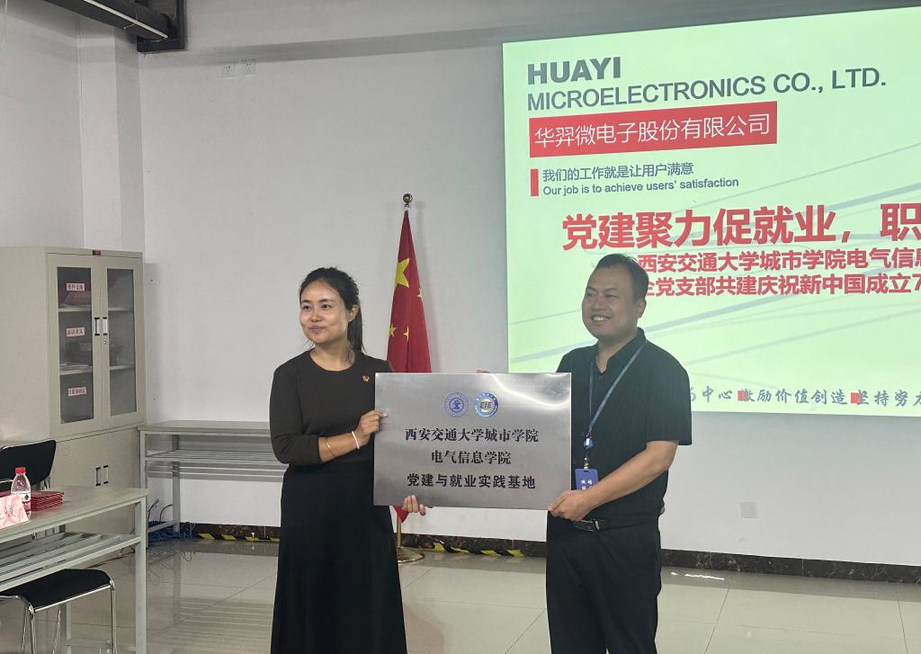 为庆祝新中国成立75周年、弘扬爱国主义精神,推进学院2025届毕业生就业工作、增强毕业生树立正确的就业观和择业观,电气信息学院于9月26日开展“党建聚力促就业,职引未来筑青春”电气信息学院、华羿微电校企党支部共建庆祝新中国成立75周年主题党日活动。本次活动在华羿微电子股份有限公司举行。电气信息学院学生党支部书记王姣,电气信息学院辅导员罗兰,电气信息学院学生党员及部分2025届毕业生参加活动。