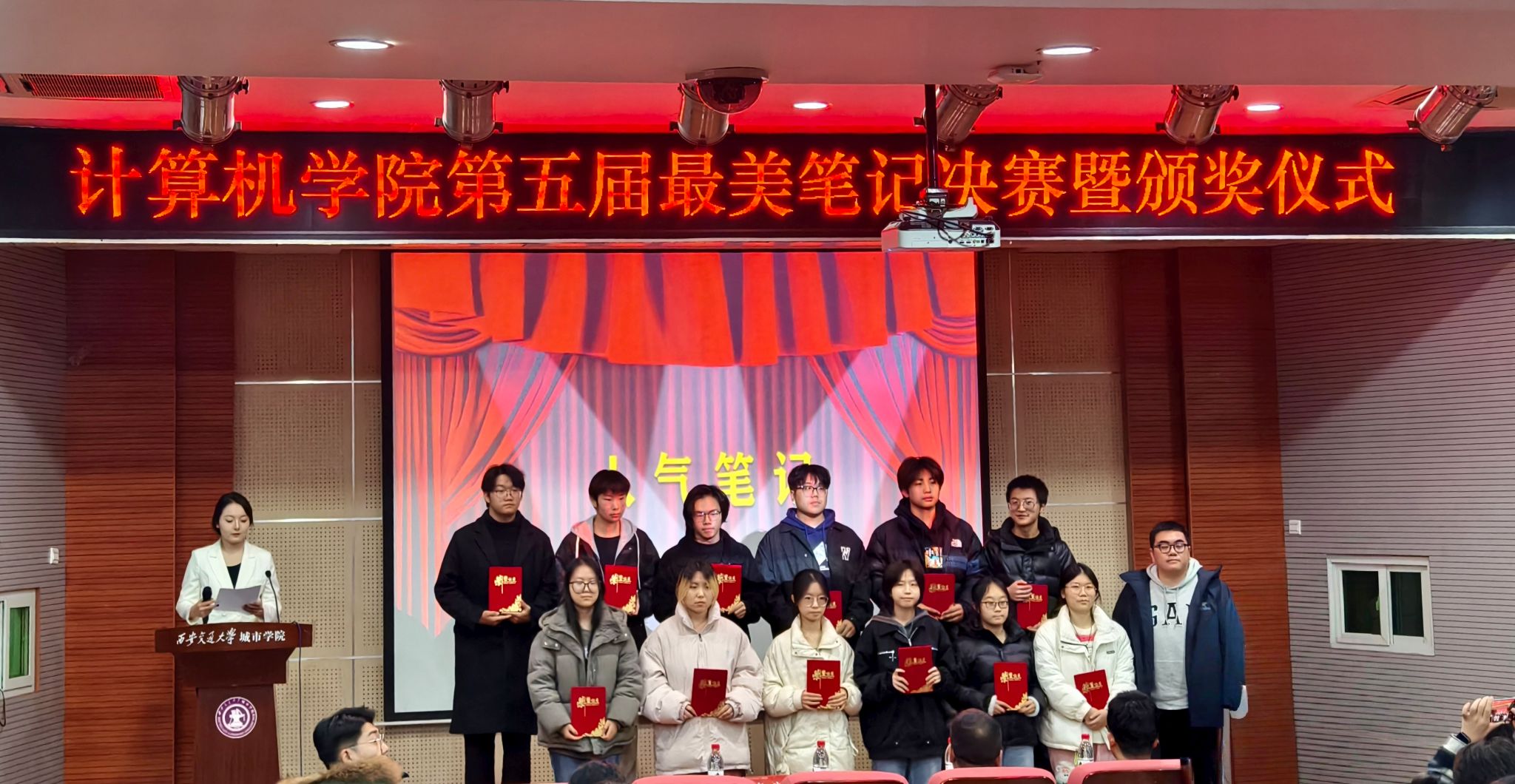 本次活动面向全院大一至大二学生,累计收到参赛作品共300余份,经过线上初赛、线下复赛评选,共有20位选手进入决赛环节。比赛中,参赛选手依次分享了笔记的制作心得、参赛的经历和日常的学习方法。随后,软件2401班罗昊东为现场师生分享了自己如何将枯燥的理论知识转化为活跃有趣而不失实用性的记笔记方法。