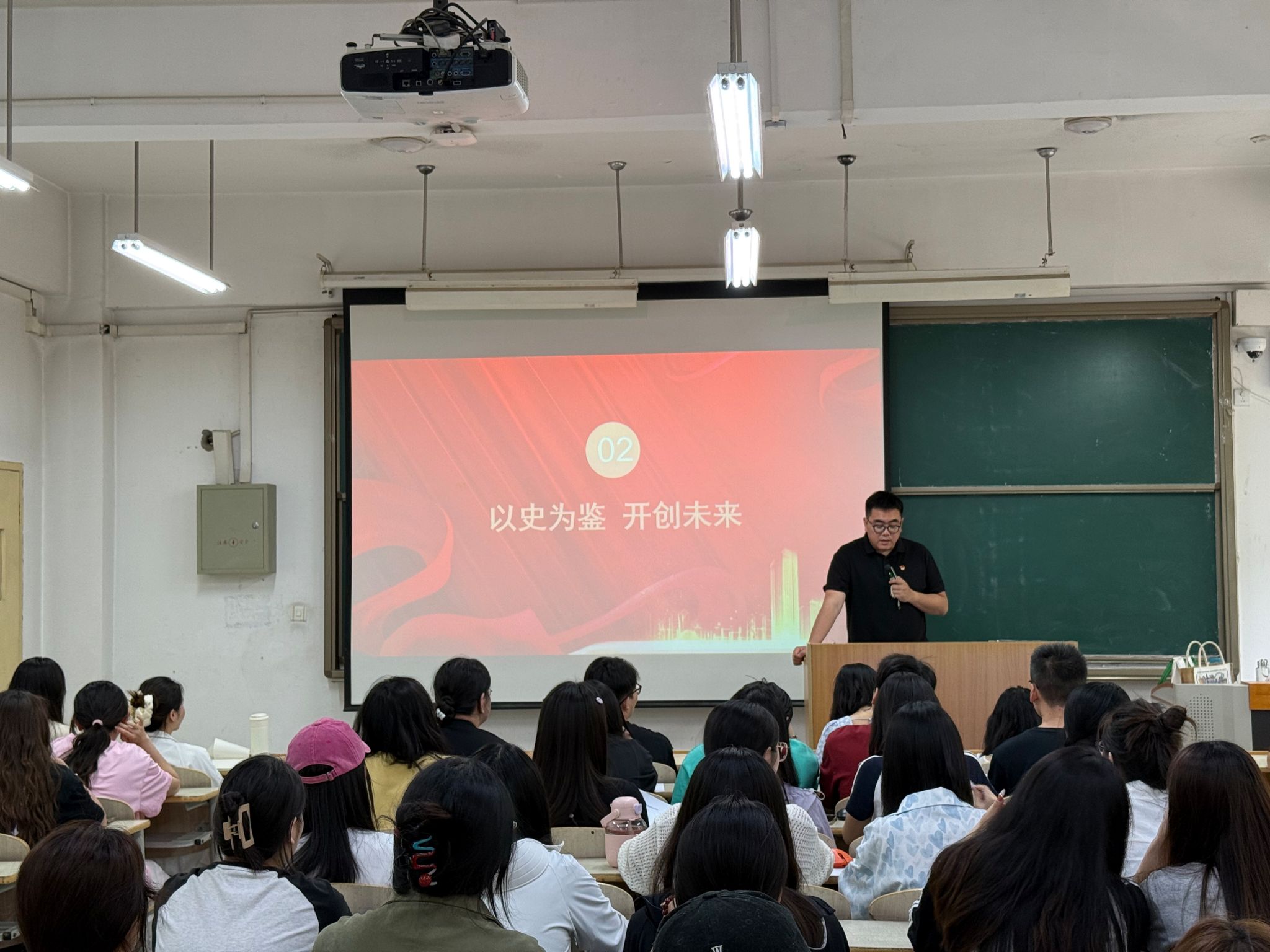 崔佳楠以“以史为鉴明志,开创未来前行”为题进行了专题党课辅导,带领全体党员回顾了党的百年奋斗历程,重点讲述了新民主主义革命时期的艰辛探索与社会主义建设时期的伟大成就。与会党员围绕“如何在新时代传承红色基因”展开热烈讨论,2021级党员代表郭荣环分享了自己参与红色实践活动的感悟:“通过此次党史学习,我深刻体会到革命先辈的牺牲精神,作为新时代青年,我们要以史为鉴,勇担时代使命。”
