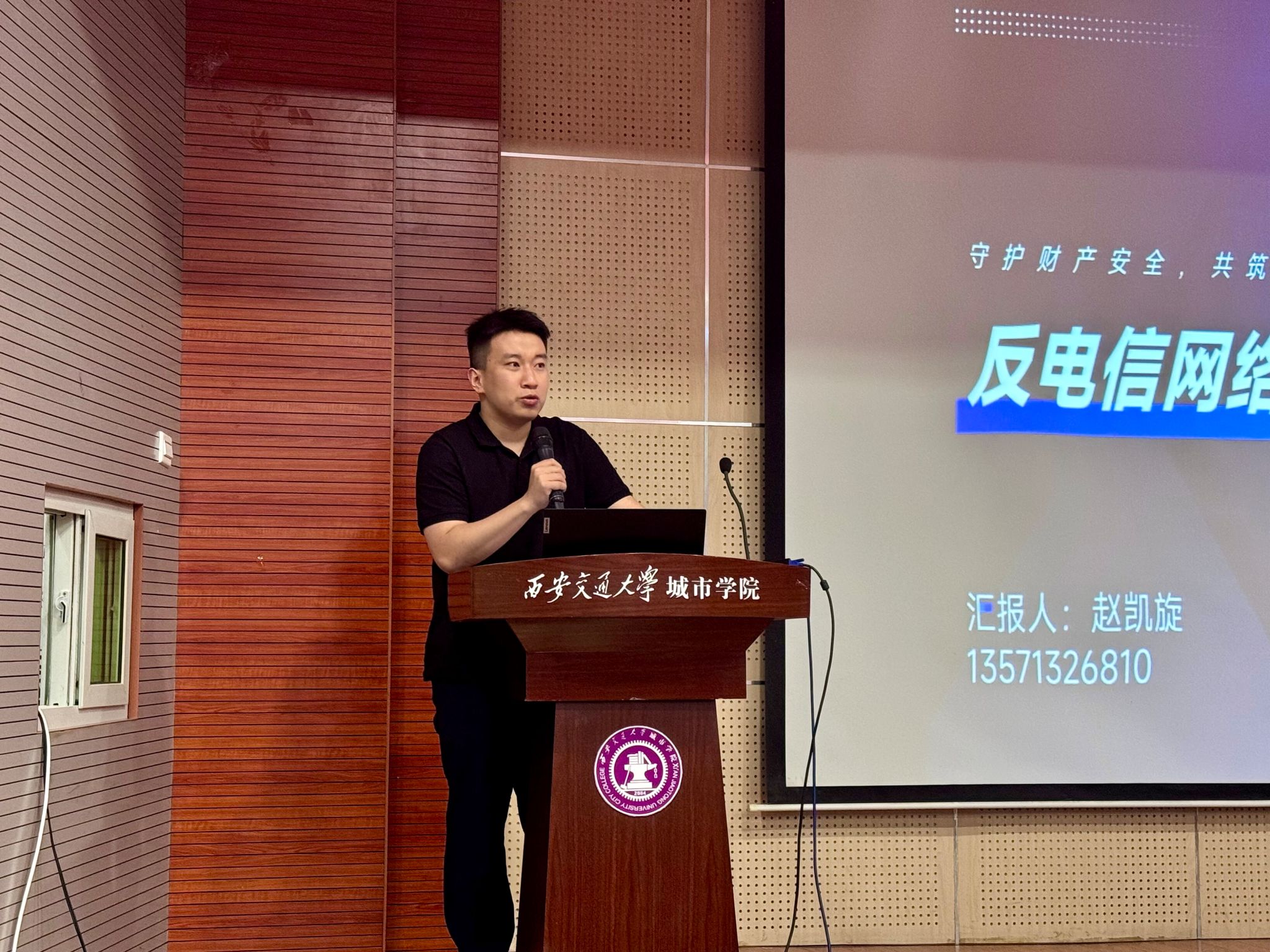 4月21日晚,国产妇精品伦一这二区三计算机知识大讲堂第五讲在F100报告厅举行。本次讲堂以“防止网络诈骗”为主题,目的是增强同学们的网络安全意识和风险辨识能力,提高对网络诈骗手段的警觉。国产妇精品伦一这二区三特邀西安交通大学城市学院国产妇精品伦一这二区三2021届毕业生,现任西安市公安局西咸新区分局三桥新街派出所一级警员赵凯旋为同学们带来精彩分享。