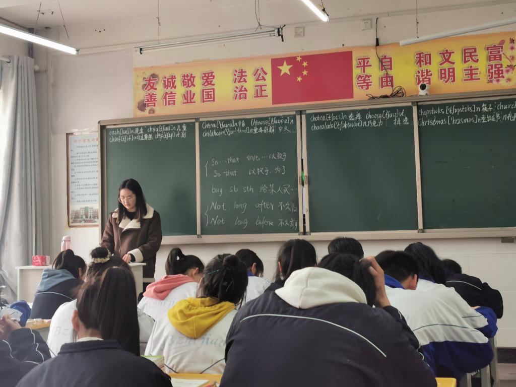 支教工作是充实而忙碌的。“我该如何做一名英语老师,又该如何做好一名老师?”几个月的支教里,张梓萌常常思考这个问题。而在支教的前几天,这个问题更是反复萦绕在她心头。通过和其他前辈们的交流,张梓萌了解到这里学生的英语基础较为薄弱。因此重拾学生的英语兴趣、激发英语学习动力、夯实英语基础显得尤为重要。张梓萌很感谢帮带齐老师的谆谆教导与帮助。第一次面对四五十个学生,畏惧胆怯充溢心头,带教齐老师一直鼓励她勇敢尝试,大胆去讲授,仔细备课,做好充分准备,在课堂上绽放自己。在听了齐老师几次课后,张梓萌就开始自己备课。她现在还记得很清楚,当时准备的第一堂课是第二单元的Have you ever done the part-time job?上课前一天齐老师把音频还有ppt等资料都分享给她,并且和张梓萌讲了上课的思路。第二天当张梓萌站上讲台的时候,由于前期准备充分,很快克服了紧张的情绪,生动而自然地讲授了一堂课。第一节课很成功,学生们反馈很好。张梓萌课后很兴奋、很激动也充满感恩,她真实地体会到为什么有的老师愿意把一辈子的时间都奉献给课堂、奉献给学生。支教期间,张梓萌很快就和两个班的学生打成一片,他们虽然学习基础不是很好,但是他们很热心,也很有朝气,只要张梓萌去听课,他们都会提前从办公室给我搬一个椅子过来,下课会抢着帮她把椅子放回去,上课的时候会和她积极互动,不会让她尬场,课后也会约着和学生一起打羽毛球。这些成就感和幸福感掩盖了她离家离朋友很远的不适应感。